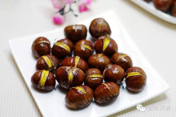 板栗用刀切个小口子,放在碗中,盖盖,用微波炉叮几分钟,趁热剥好。实践证明,这种方法去皮容易,而且颜色相当漂亮。但放了一会儿颜色就会变深。