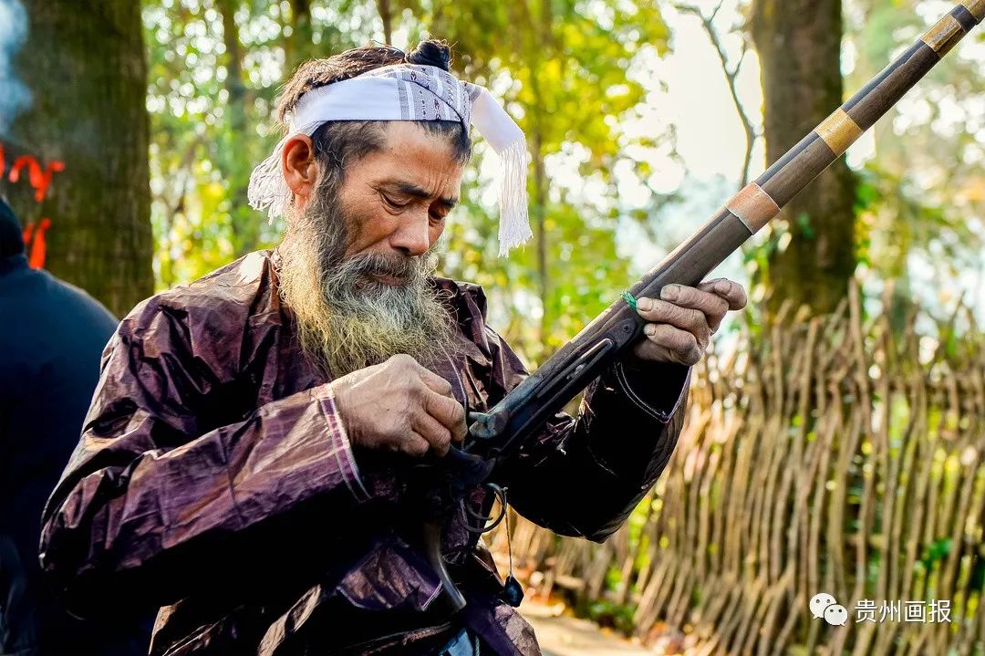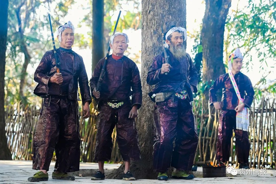 岜沙寨门,苗族同胞的女人们身着盛装,迎接四方来客,等火枪队朝天鸣枪,客人便在他们的带领下,来到了节日的第一个活动“祭祀仪式”。