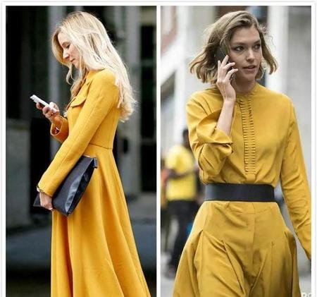 年节期间想在人群中瞬间吸睛又不惹眼,偏复古自带满满元气的姜黄色就应景又有范。