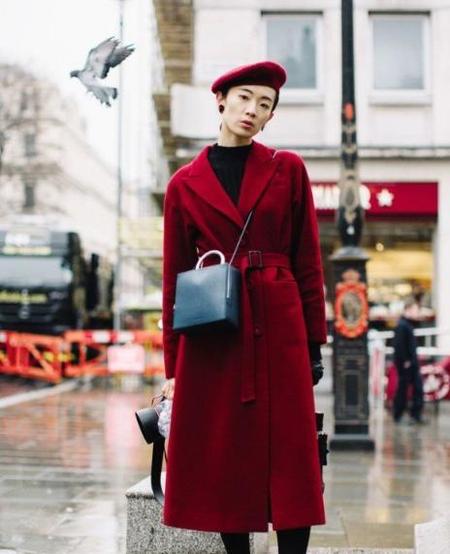 选择一件优雅时髦精致的大衣,红色的大衣点缀红色贝雷帽,一身鲜艳的颜色,很有年底的节日气氛。收腰的设计时髦又拉长视觉比例显高。搭配撞色系的包包,简直就是精品了!