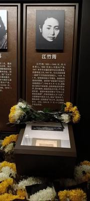 江姐推荐牺牲时不过29岁,她的面前摆满了凭吊络摇者送来的鲜花。