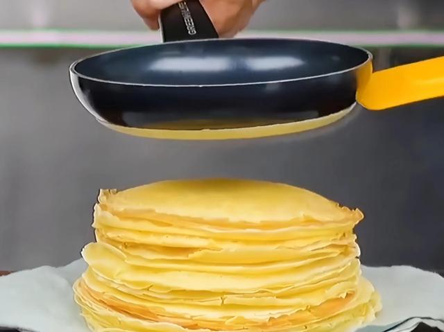 4、平底锅的锅底粘上制作工面糊,翻过来在抄报火上烘烤,就得到了简单香喷喷的煎饼。