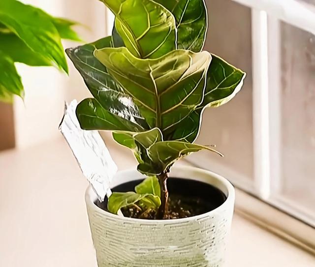 10、剪下一小截百洁布,放在栽绿植一年级的土里,这样就不用担心植物缺水啦。