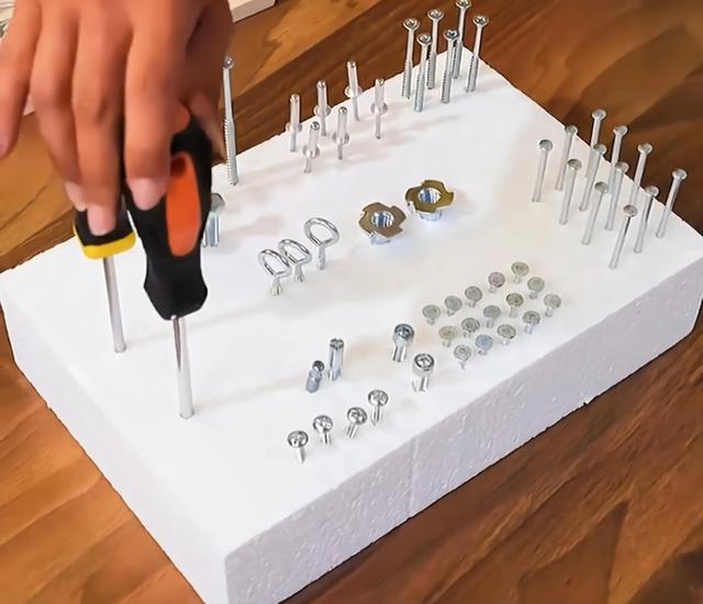 21、把家里的铁钉和维修工具插在大全泡沫上,就整洁多了。