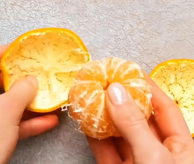 1、在橘子中间切一刀,就能轻松去皮。