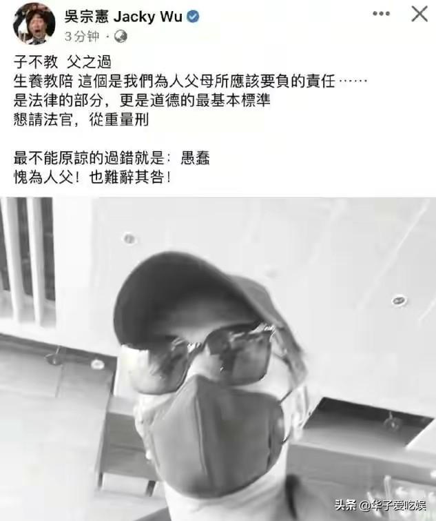 随后吴宗宪也紧急出面表示:希望警方从重处罚,子不教,父之过!我最不能原谅的过错就是“愚蠢”,愧为人父,难辞其咎!