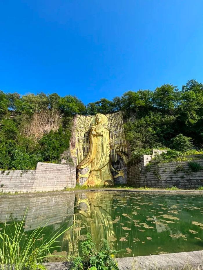太极岛上天然森林茂密苍翠,荫天蔽日。林密幽深,气温湿润。山路萦绕,曲径通幽,多有山乡野趣。大自然的鬼斧神工造就了上鹤下龟的地形,又经能工巧匠的一番琢磨,成为一处沐浴佛教文化的绝妙景观。世界第二高送子观音大士垂眸俯视众生,世界最大的摩崖睡佛侧卧水畔,遥相辉映。数百尊形态各异的小沙弥艺术石雕遍布全岛,形貌生动,栩栩如生。
