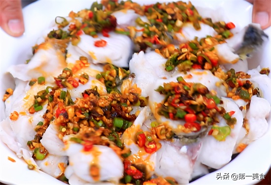 把锅烧热,多放一些植物油,油温五成热时把控干水分的辣椒和花椒倒入锅中,开小火炸出里面的水分,辣椒炸香变色以后起锅,均匀浇在鱼片上面激出料汁的香味,再撒上葱花和香菜美味即成。