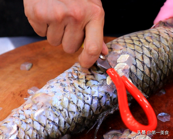 鱼的宰杀没什么好说的,建议买的时候让卖家处理,主要步骤就是拍晕,然后剪去鱼鳍,刮去鱼鳞 ,去除内脏、鱼鳃和牙齿,用钢丝球把腹部的黑膜和身上的黏液刷洗干净,再把鱼头剁下来抽出两边的鱼腥线,这样基本就没多少鱼腥味了。