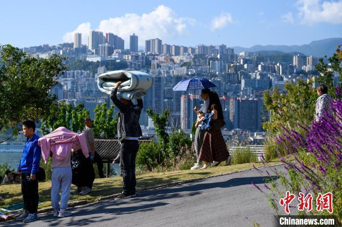 市民在宁江渡公园游玩。中新网记者 何蓬磊 摄