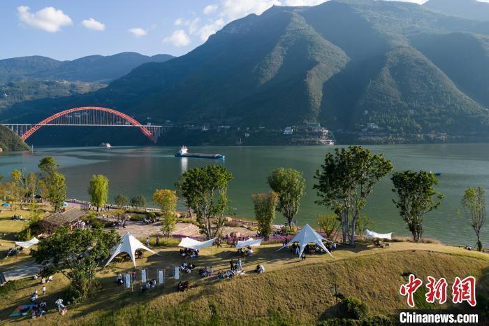 巫山宁江渡公园位于重庆市巫山县的长江与大宁河交汇处,近年来,通过生态修复,宁江渡从一片荒芜滩涂蝶变成为长江畔的生态公园,独特的江景视角吸引不少民众前来赏景、游玩。