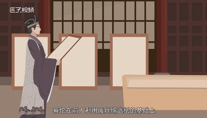 为了制造一种比较理想的书写材料,蔡伦在前人利用废丝绵造纸的基础上,采用树皮、麻头、破布、废鱼网为原料,成功地制造了一种既轻便,又经济的纸张,总结出一套较为完善的造纸方法,使造纸技术有了飞跃性的进步。
