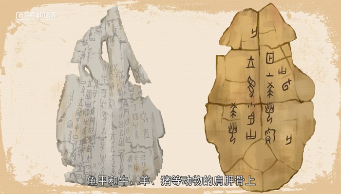 在我国商朝时,人们把文字一笔一划地刻到龟甲和牛、羊、猪等动物的肩胛骨上;