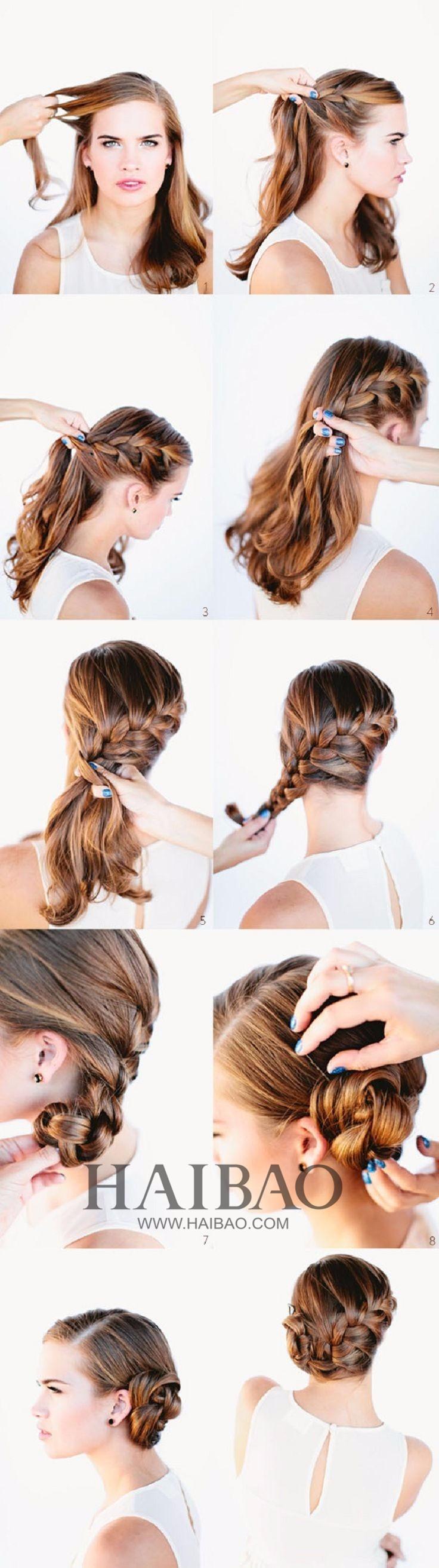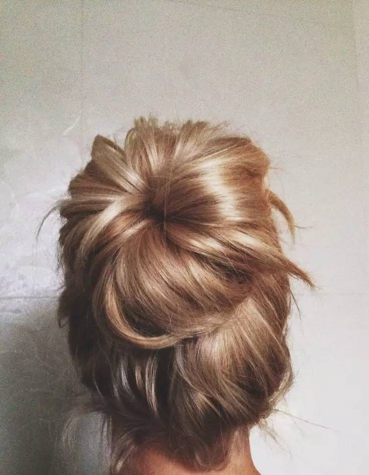 但是日常生活中为了方便或者节约时间,大多数情况下我们就是简单的一个马尾,然后将头发拧成一股,缠绕在皮筋束起的地方,最后用一个发卡固定,或者没有的就直接掖进皮筋里。↓↓↓