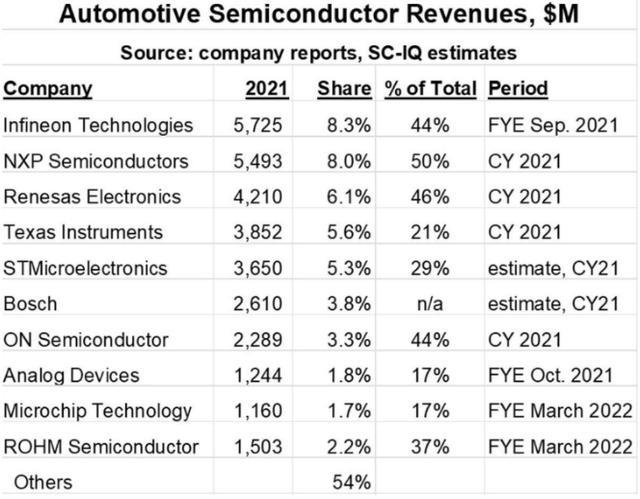 2025年,全球十大车用芯片厂商收入排名 图源:半导体情报(SI)