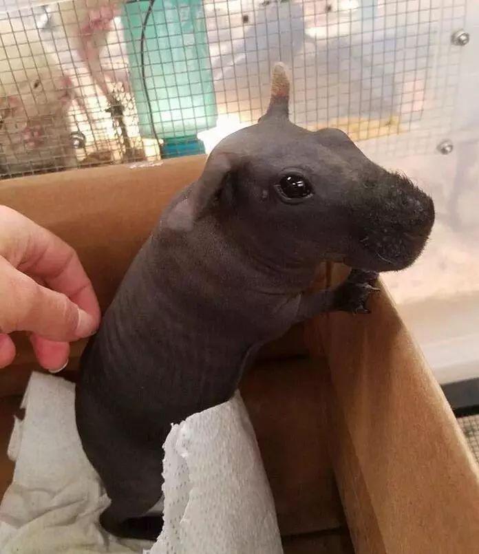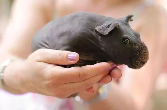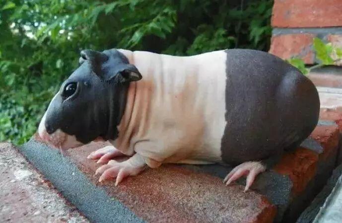事实上,这种长得像“迷你版”河马的豚鼠品种,被称为Skinny Pigs,它们的大部分皮肤是无毛的,但是它们的口鼻、脚和腿上仍然会有一些毛。