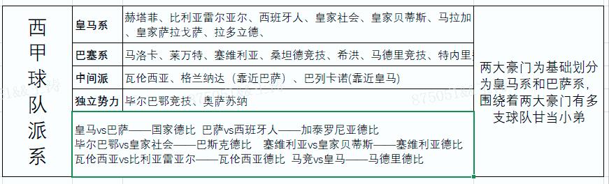 每日小知识:西甲联赛球队派系