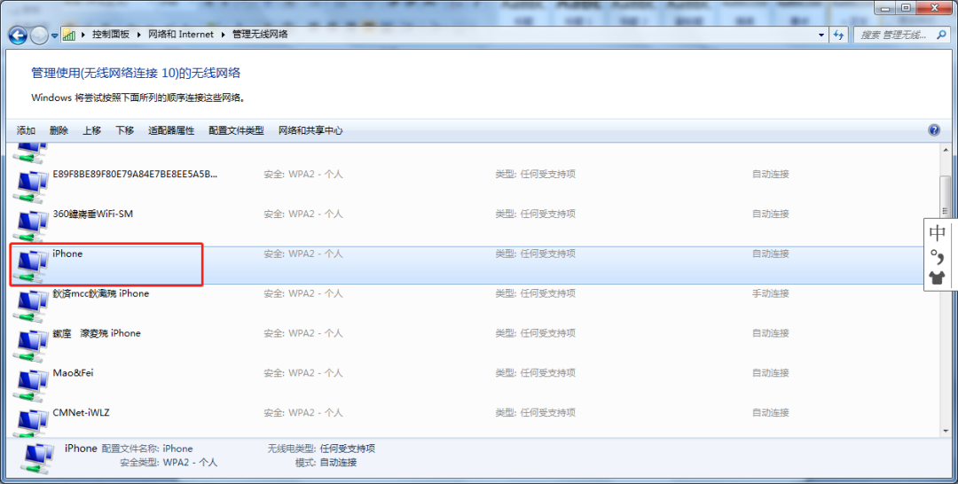 Step2:找到已连接WiFi,右击选择【无线属性】