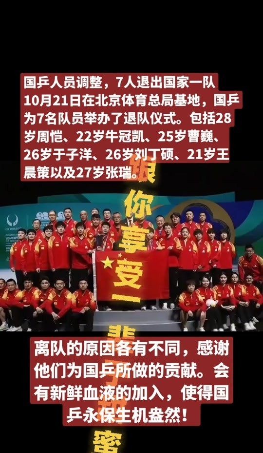 国乒最新消息:世界冠军退队,王楚钦沦为众矢之的 马龙喜提新身份