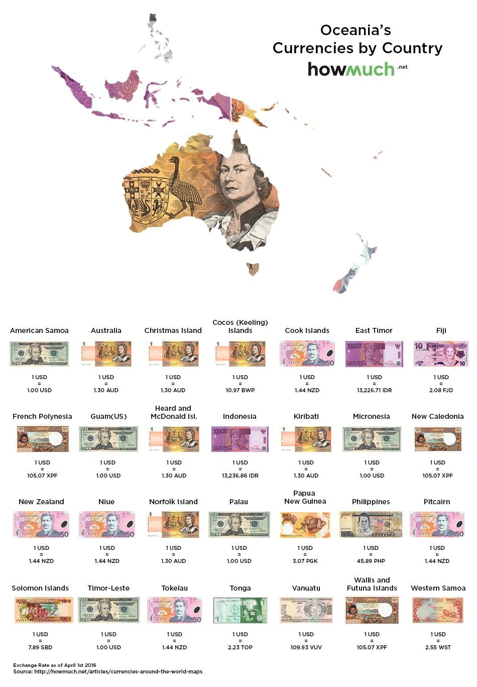 大洋洲28个不同的国家中,最强势的货币是帕劳,也是使用美元。最弱势的货币是瓦努阿图的货币瓦图,1美元相当于109.9瓦图。
