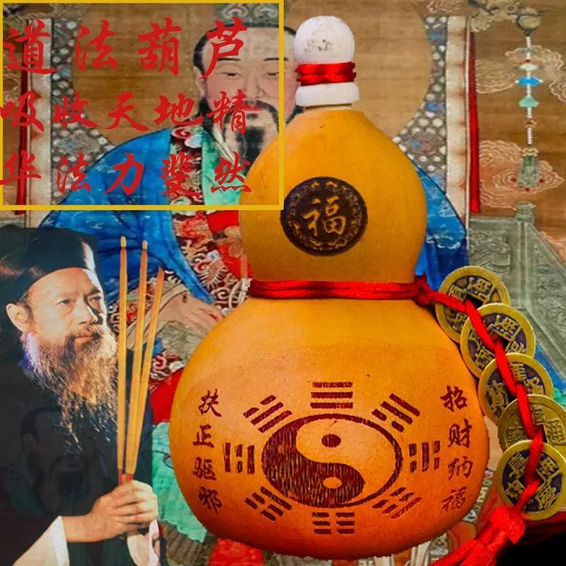 葫芦:谐音“福禄”,根茎蔓带谐音“万代”,有“福禄万代”吉祥寓意。道教认为葫芦能吸收天地煞气,可驱邪避祸,古代道长云游时常携带,既是盛水器皿,也是抵御邪气的法器。
