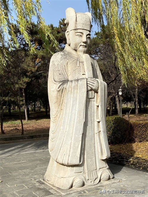 明朝的一品官都穿啥、戴啥?好奇嘛?最形象、最准确的,可以看看十三陵神道上的文官像。给明成祖守护陵墓的有四位明代一品官,他们的形象是绝对不会错的。