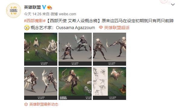近日,英雄联盟官方也是发出了关于寒冰女王艾希这款西部天使皮肤的设计概念稿,其中就说到了“西部天使”这个皮肤为什么只有两个前蹄:因为设计师早期设定的时候就只给设定了两条腿,这个设计师真的是概念艺术家。