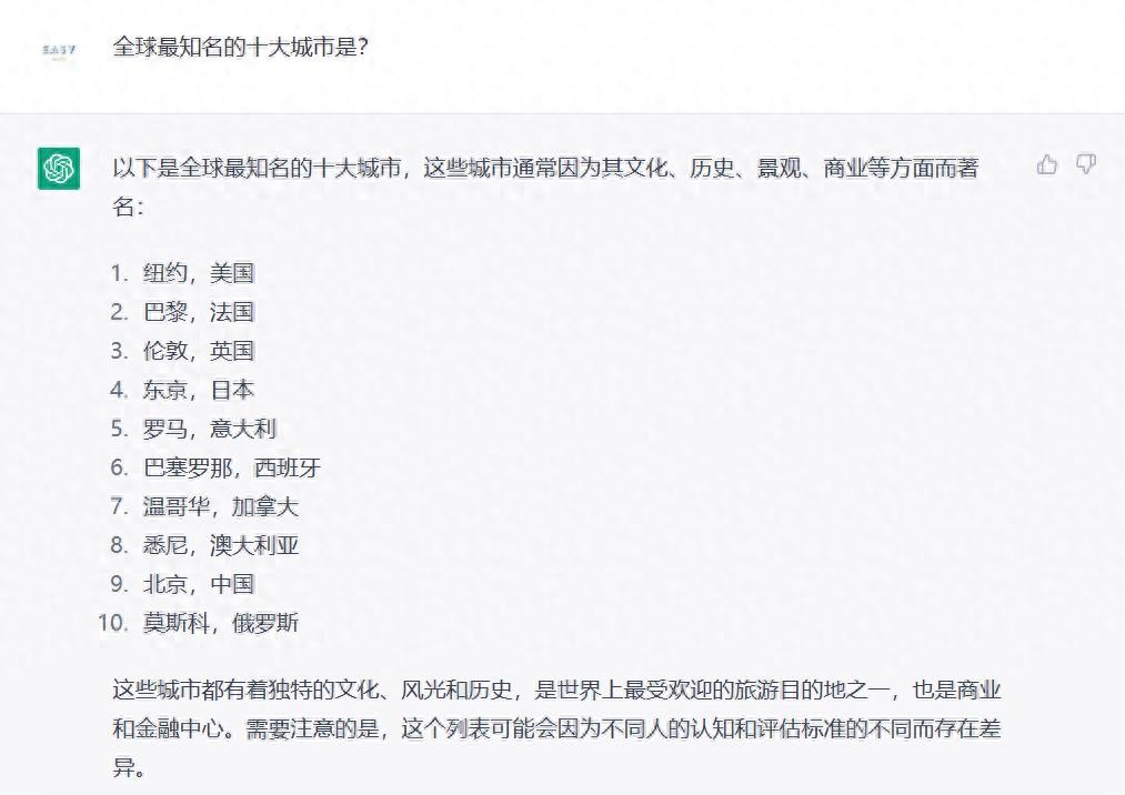 ChatGPT:全球最知名的十大城市