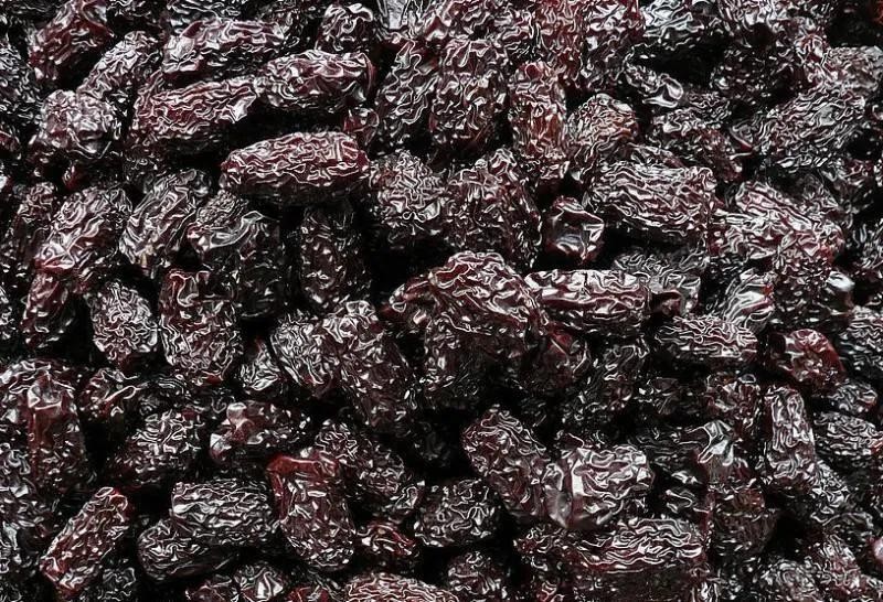 七:茬平乌枣 又称焦枣,用优质红枣水煮、薰制、晾干,色泽明亮,乌紫酥甜而带有独特香味。