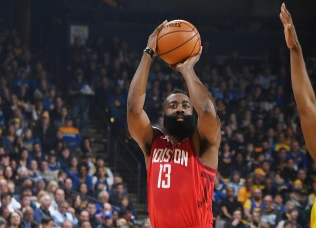 NO.9:哈登绝杀勇士。全场比赛大胡子44+10+15的超大号三双,带领球队拿到了这场关键比赛的胜利。