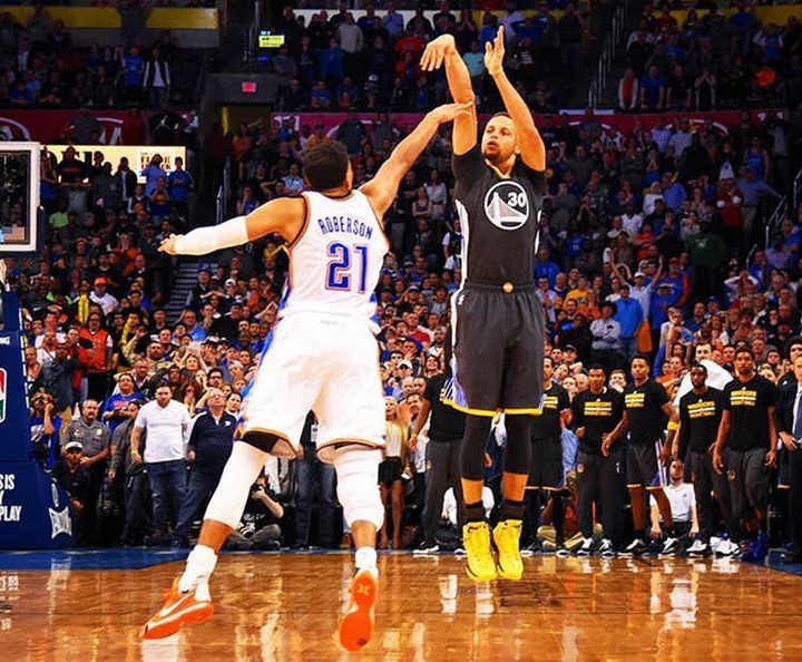 NO.5:库里超远三分绝杀雷霆,2016年西部决赛,勇士VS雷霆抢七大战。库里奉献超远三分绝杀,打服杜兰特直到阿杜加盟勇士!