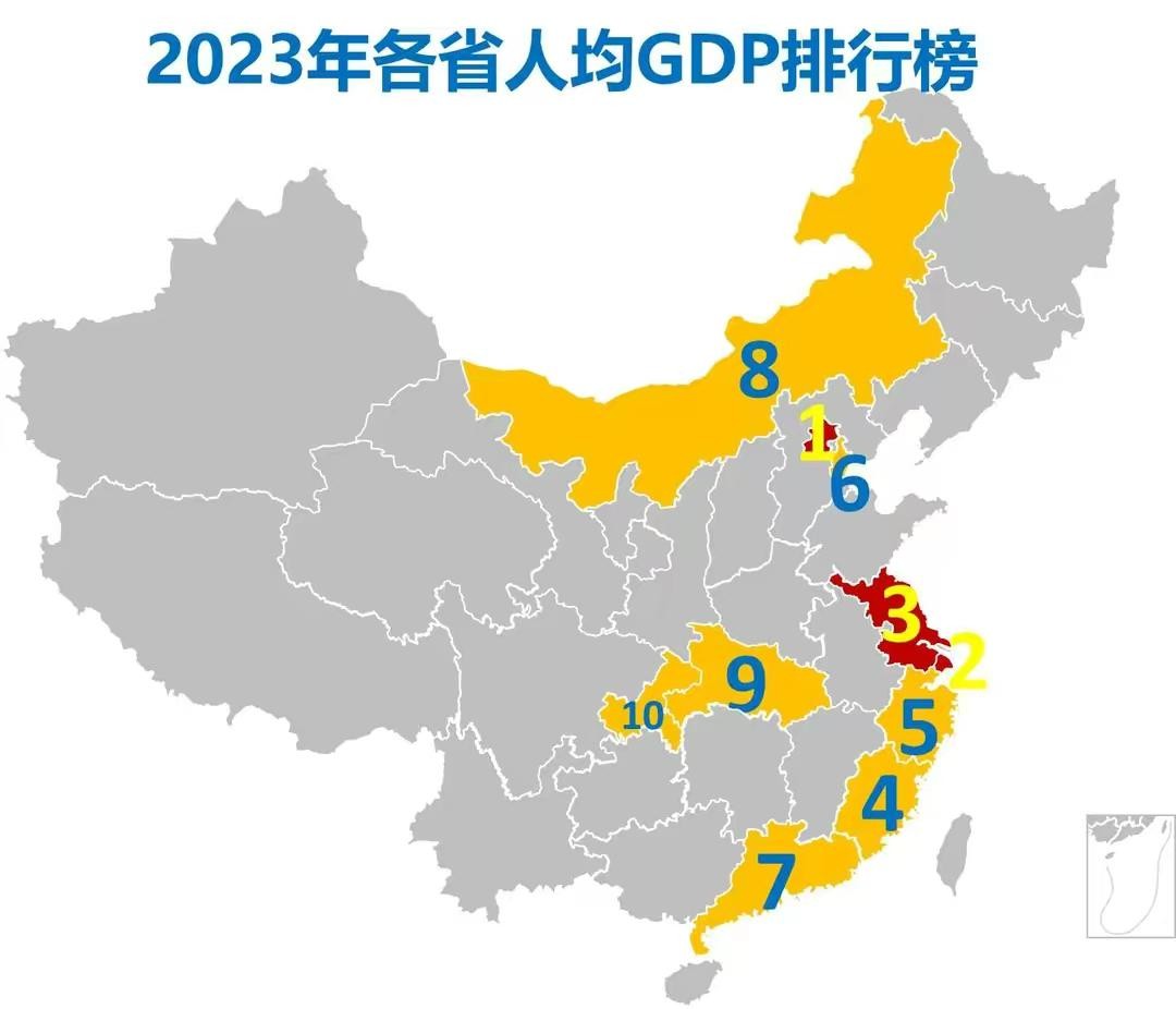 2023人均GDP前十省市,北京首位,湖北赢家,四大省份不在其列。