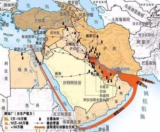 中东地区石油产运图
