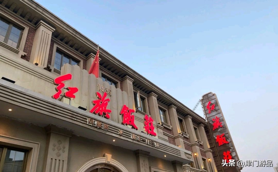 第四名,红旗饭庄。创建于1925年,距离现在也快百年了,它家的菜品是最地道的天津菜,打的招牌也是郑总的津菜。比如说蟹黄鱼翅、玉兔烧肉、炒青虾仁、罾蹦鲤鱼、老爆三等等。