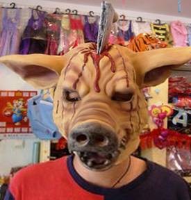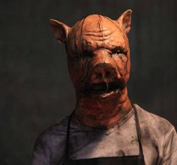 1893年世博会期间,存在一个带着猪头面具的杀猪屠夫,他会在杀猪时发出“哼哼”的声音,融入猪群中,宰杀生猪。但在传说的描述中,这位技艺精湛的屠夫先生发生了一次悲剧,意外的摔倒,让猪头面具离开了他的脸,同时让他活活被生猪咬死活吞。而事后整个芝加哥出现了多起恶性杀人事件。有人称,这是屠夫的恶意。甚至流传,只要你站在镜子面前轻声念道“here,piggy,pig,pig!”猪头屠夫就会如约而至,向你复仇。
