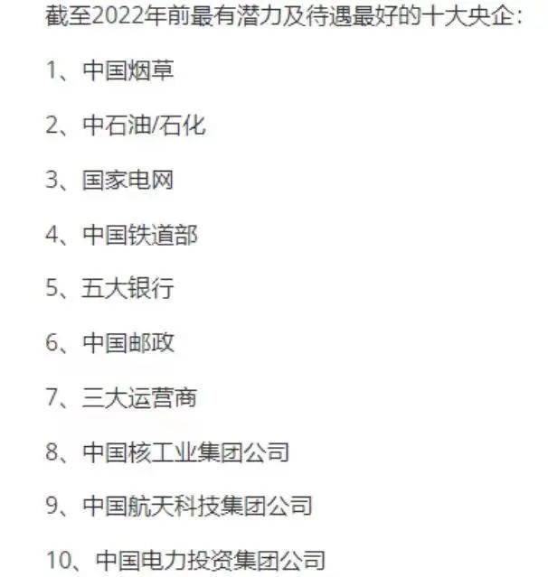截至2022年最有潜力及待遇最好的十大央企排行榜!