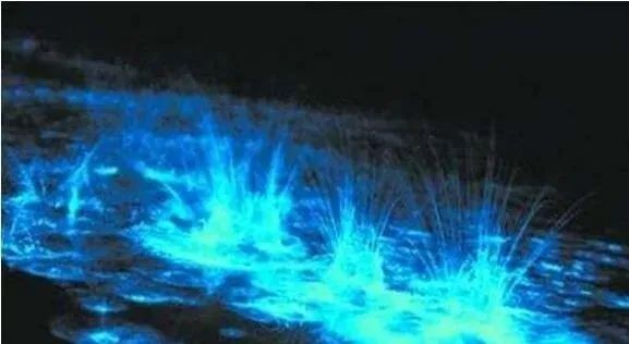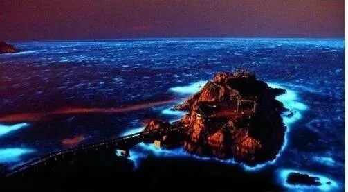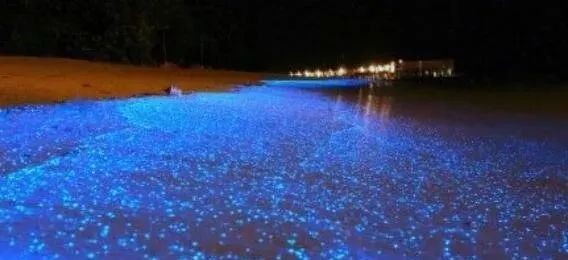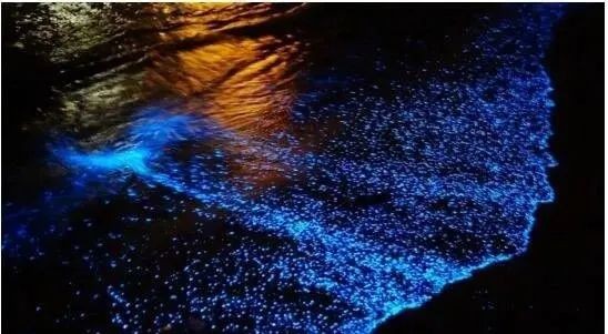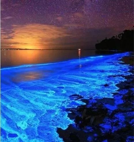 据说是日本冲绳岛的神奇夜光海沙,每晚都这样。也有人说这是澳大利亚的“潘多拉星球”之湖。湖水如同被倾倒进荧光染料一样,夜晚会发出幽蓝色的光芒,将石子投入湖中,也会激起蓝色的荧光,人在湖中浸水或游泳后,身上也会染上一层蓝色荧光。