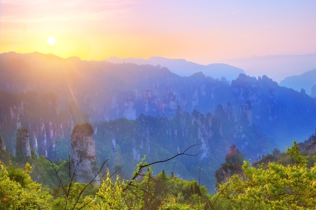 张家界国家森林公园,拥有世界上独一无二的石峰林景观,被誉为“人间仙境”。这里的峰林、溪流和原始森林构成了一幅绝美的自然画卷。建议游玩时间为三天至四天,雨天请注意安全。