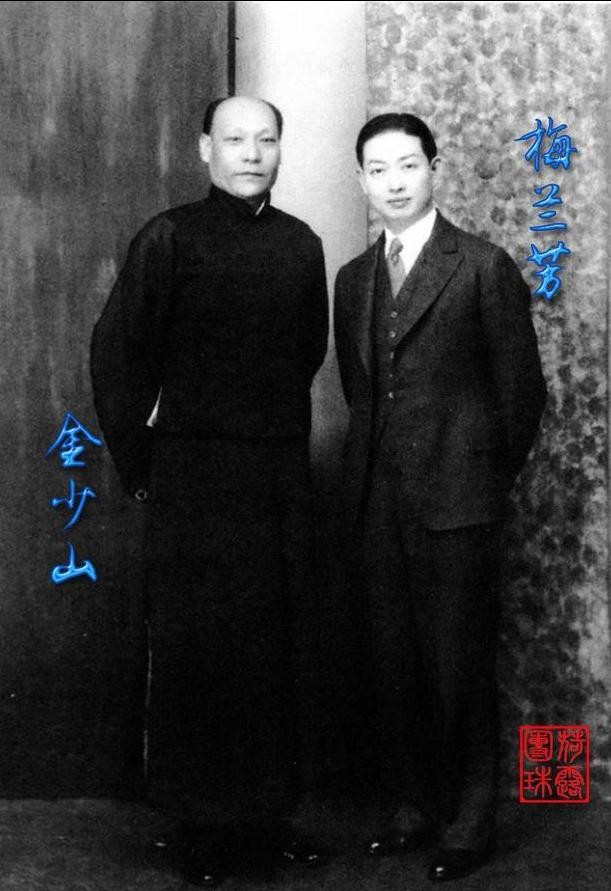 1926年12月10日首次与梅兰芳合作,主演了剧目《霸王别姬》,金少山饰演霸王项羽,由此博得了“金霸王”的称号。