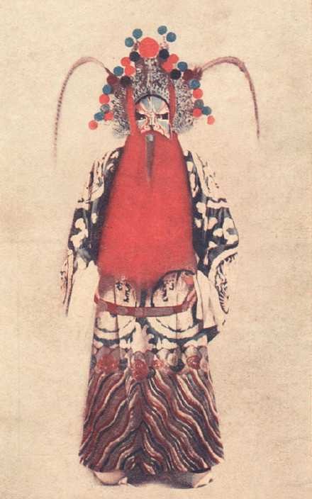 金少山的脸谱勾画深得何桂山亲传,谱式图案简净大方,装饰生动形象突出,加之身材伟岸,颇具雄浑古朴之帅气。