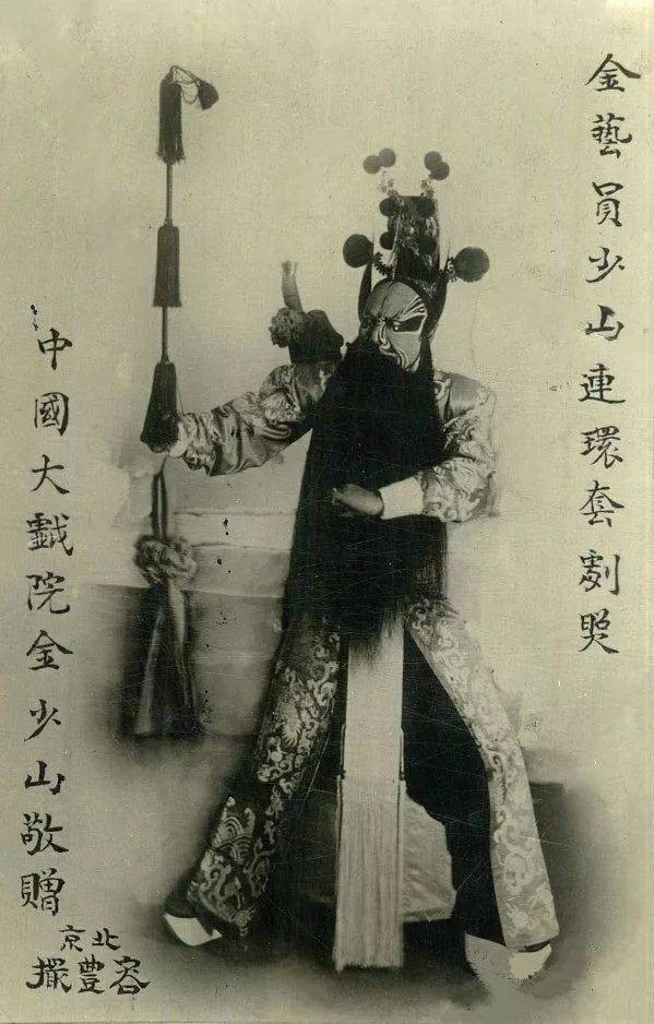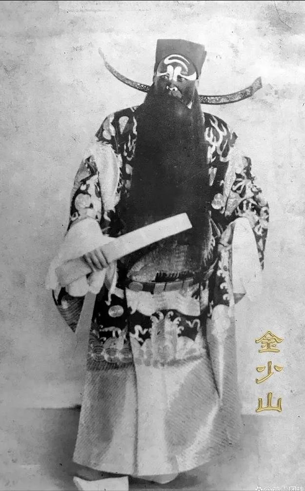 1906年金少山正式随其父搭班演戏,1912年首次到上海演出,在谭鑫培的打炮戏《失空斩》中金少山扮演马谡。