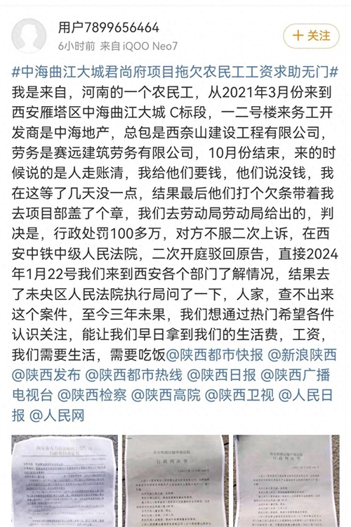 由中海地产开发、西安西奈山建设工程有限公司总承包、陕西赛远建筑劳务有限公司管理的这个工地,本应是他的梦想起航地。然而,当秋风起时,他和许多工友面临的,却是工资迟迟未能到手的残酷现实。