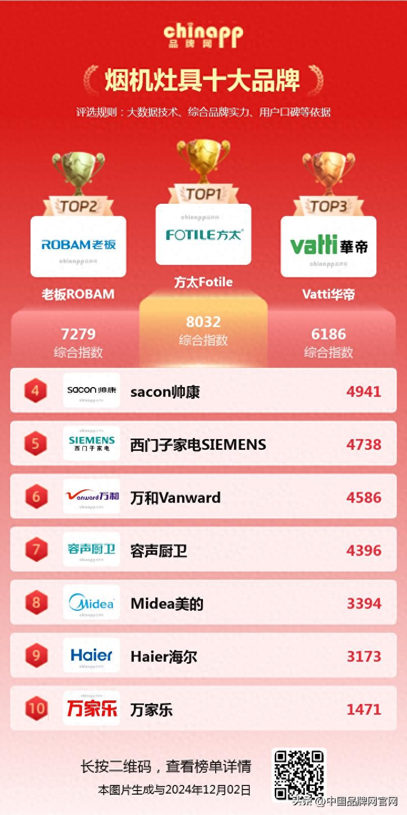 好了,关于烟机灶具的行业榜就为大家介绍到这,需要了解更多关于行业榜单的,可以留言联系我们,我们会详细为大家解答。