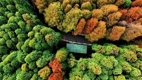 2、山王坪喀斯特国家生态公园。位于重庆市南川区010乡道。每年的11月中旬到12月中旬,重庆的山王坪迎来最高光时刻。一边水杉猩红,一边的柳杉葱绿。林间还有一大片藤缠石、石附树的喀斯特生态石林,有着形态各异的石山石林石笋,如幅天然的图画,一座天然的盆景园,景点有枯木逢春、石观音、飞来佛、笔架山、青龙出山、一线天等。
