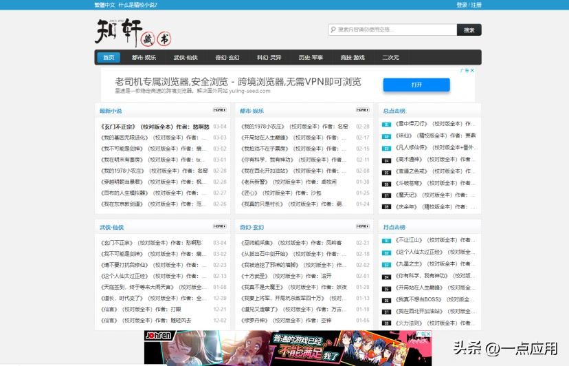 一个拥有海量小说资源的网站,可以称得上是小说爱好者的天堂,集结了网络上质量最高的全集精校版和校对版小说,能很好地满足不同喜好的书粉,另外对小说还有进行细致分类,更新速度也快,查找阅读起来都是超方便。