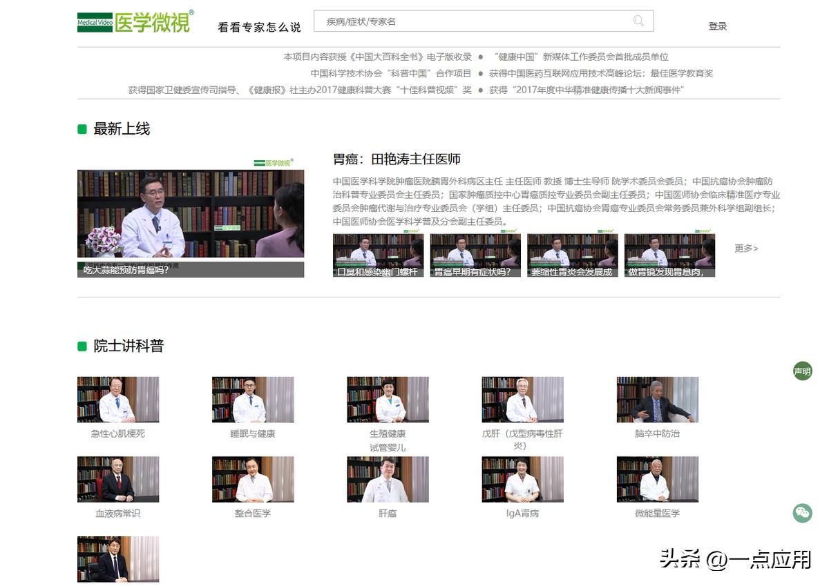 一个中国医学科普微视频百科全书,汇集了多位著名专业学术院士的视频课程讲解,包含儿科、骨科、口腔、皮肤疾病、耳鼻喉疾病等多门学科,旨在满足公众对权威医学知识的需求,还能给需要的人提供一些有用的医学帮助。