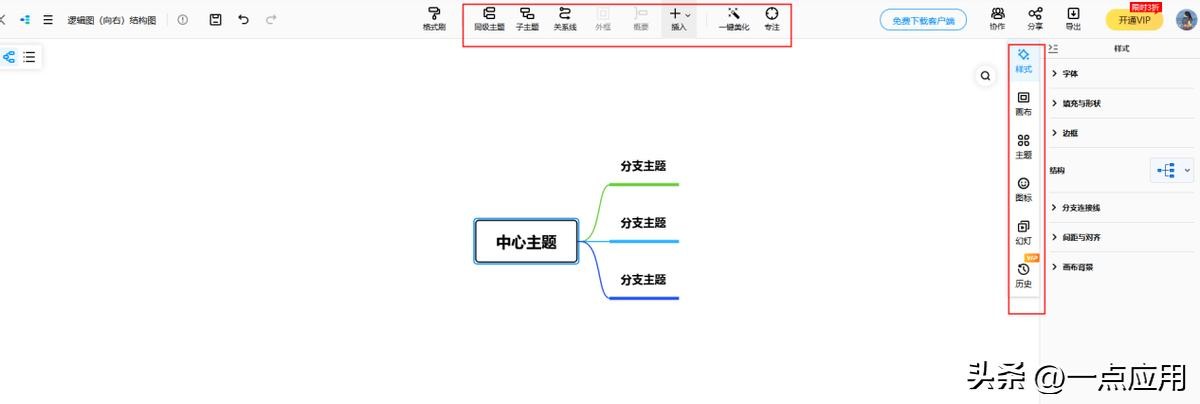 支持创作流程图、思维导图、白板文件等多种类型,可自定义或从模板新建,支持自由编辑切换,包括样式、主题、图标等,一键实现添加美化,让图文呈现更加形象且直观易懂。
