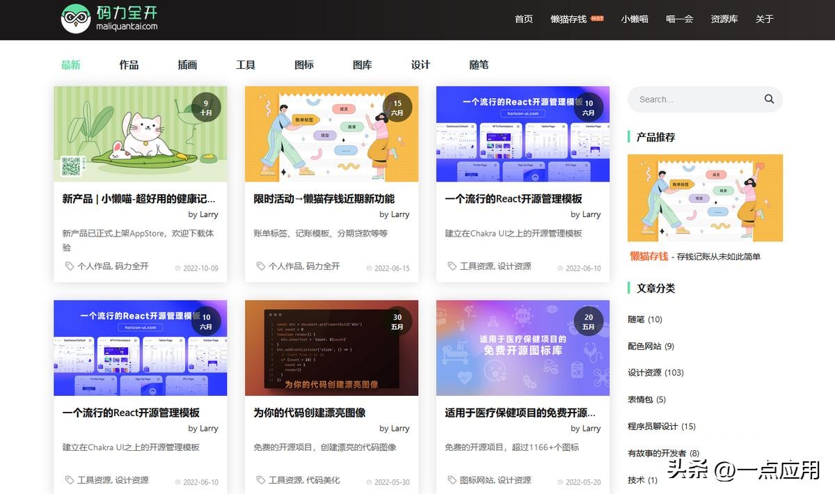 一个汇集产品、设计师、独立开发者的素材资源库,会不定期更新关于插画、图库、图标、配色、字体、logo等多种类型的干货内容,内容质量高的同时覆盖面也广,还有在打造自己产品的同时在一路摸索帮助更多人成为独立开发者。