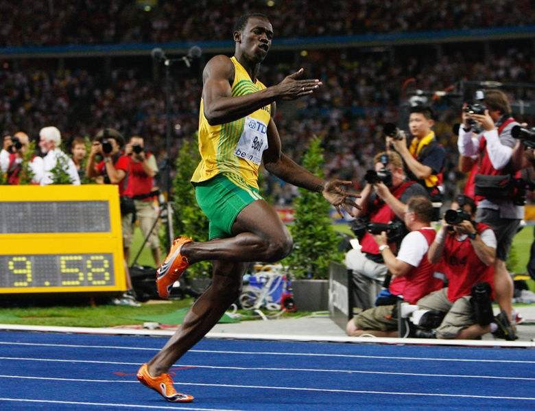 No1 . 2009年柏林世锦赛百米决赛,博尔特以9.58秒的成绩率先冲过终点击败了盖伊的9.71秒,并且创造了新的男子百米世界纪录,他的这项世界纪录被誉为田径场上最难打破的世界纪录之一。