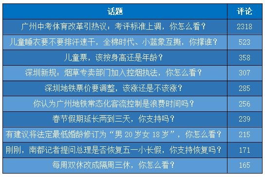 此外,还有儿童睡衣争议、儿童票标准、深圳新规、广州地铁客流控制、放假安排、法定婚龄下降等话题,成为南都网友年度关注之最。